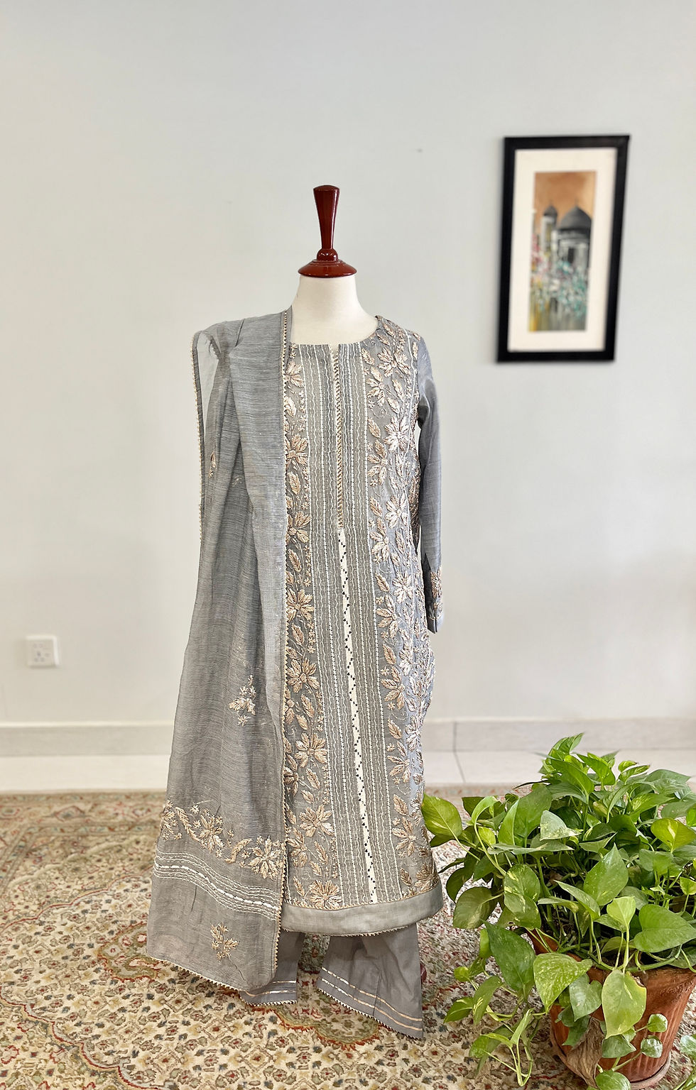 Hand Embroidery aari work on Paper Cotton 3 piece. 3 piece silk